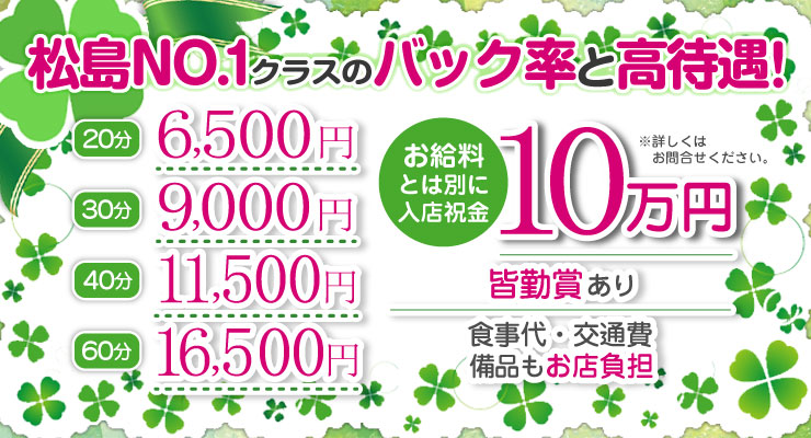対面店なし!年末年始特別募集! 松島新地・対面店無しのエスポワールです♪ 松島じょぶで初めて女の子募集させて頂きます。 ◆特別ボーナス◆年内…
