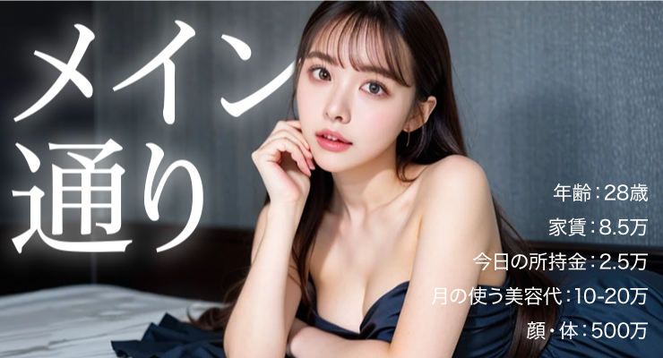 メイン通りまん中は店舗数が最もあり人通りも車通りも大変多く競争率も高い激戦区ですが、繁忙期に稼ぐ女の子は1日20〜30万円持って帰る子もいるほどです。